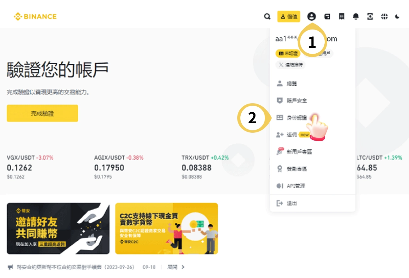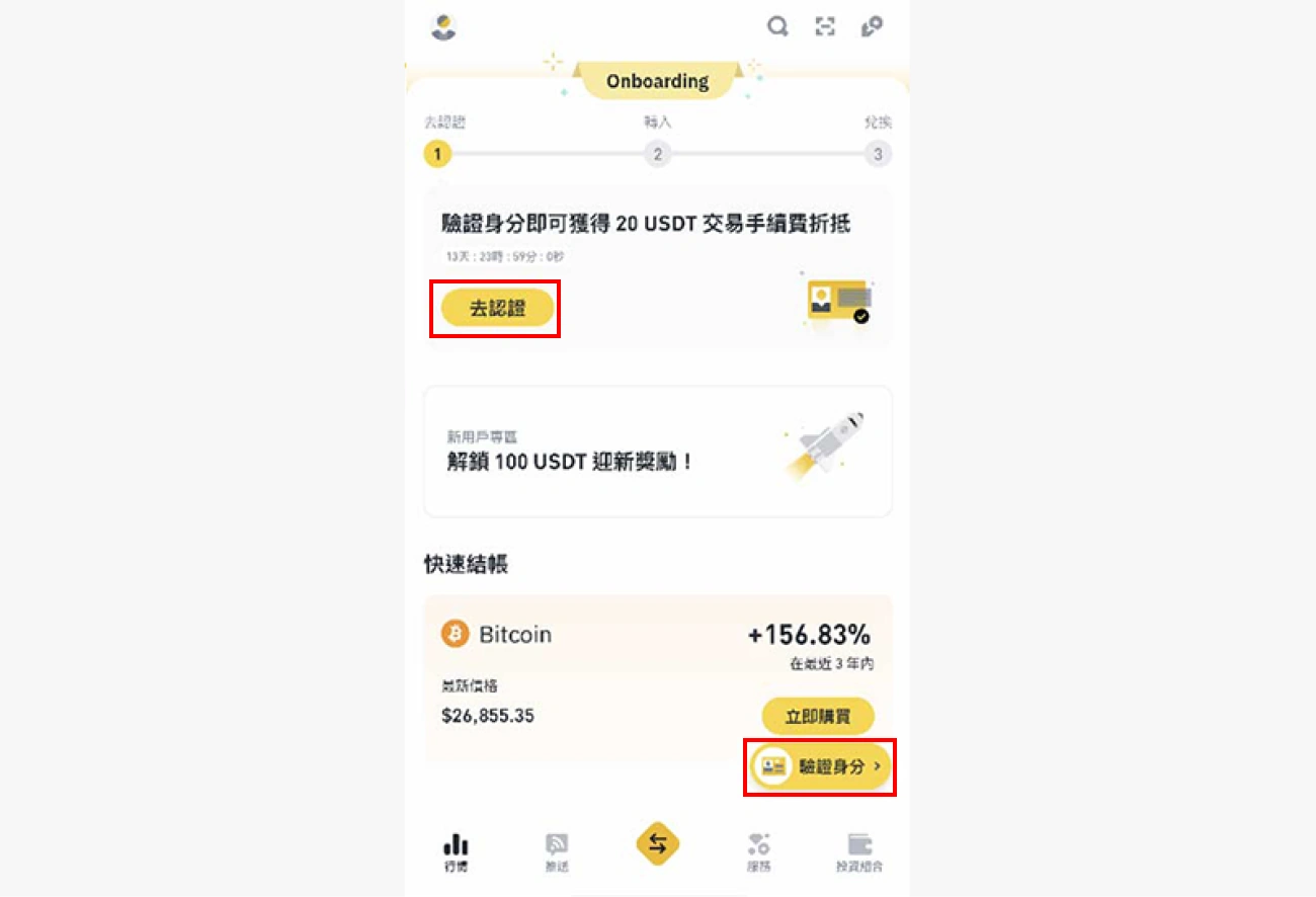 登入APP後,點擊去認證或驗證身分,繼續完成帳戶驗證